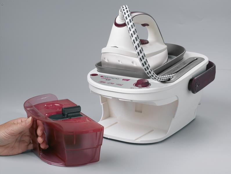Парогенератор с профессиональным утюгом позволяет гладить и отпаривать любые фасонные вещи, постельное бельё, портьеры, лёгкие и трикотажные ткани. Безупречный внешний вид изделий достигается с помощью сверхмощной подачи пара и легко скользящей подошвы утюга из нержавеющей стали. Парошланг вращается на 360°, благодаря шарнирному соединению. Парогенератор имеет компактный размер и мобильную ручку для переноски с автоблокировкой. Автоматически сматывающийся электрошнур и полностью убирающийся парошланг делают удобными не только работу, но и хранение.